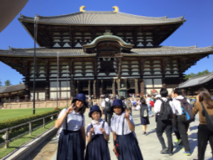 10月9日(木)、10日(金)に修学旅行で奈良、大阪へ行きました。奈良では、春日大社、東大寺などの歴史的建造物を見学しました。大阪では、梅田スカイビル、海遊館を満喫しました。笑顔も会話も絶えない楽しい旅行となりました。この経験を、これからの学校生活にも生かしていきたいと思います。
