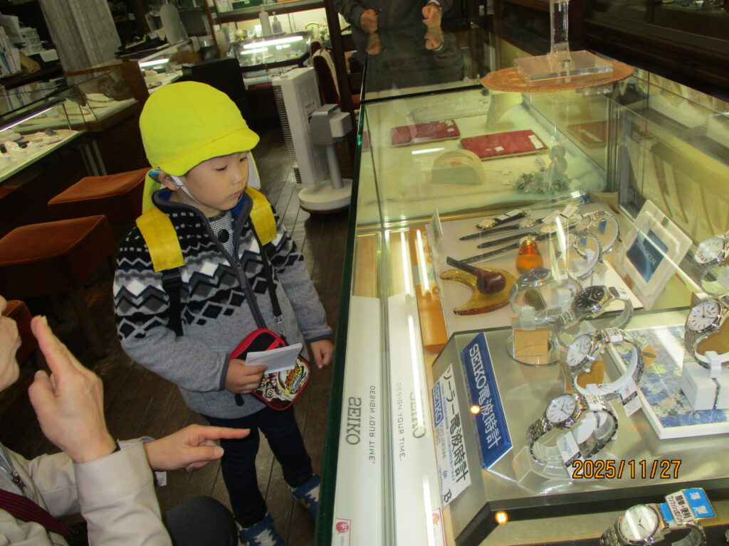 時計屋さんや眼鏡屋さん、食器屋さん、本屋さん等、たくさんのお店を見学しました。