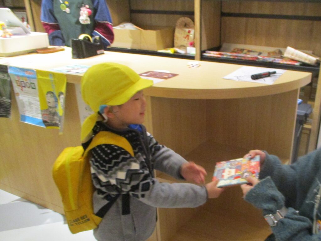 本屋さんでは気に入った本を選んで買い物体験もできました。