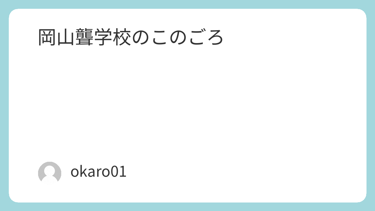 岡山聾学校のこのごろ 2025.06.192026.03.29 okarodeaf0000 岡山聾学校 野菜の収穫をしたよ! 投稿日: 2026年 3月 11日 乳幼児教育相談 もも組のみんなで、中学部 小学部>6年生を送る会 投稿日: 2026年 3月 10日 3月5日(木)6年生を送る会がありまし 宮太鼓贈呈式 投稿日: 2026年 3月 10日 3月9日(月)平林金属株式会社 代表取締役社長の 高等部>幼稚部の飾りつけ 投稿日: 2026年 3月 6日 高等部1年生が、授業の一環として、もう 高等部>卒業式 投稿日: 2026年 3月 6日 3月3日(火)高等部の卒業式が行われました。 P 高等部>生徒総会、3年生を送る会 投稿日: 2026年 3月 6日 2月27日(金)午後、生徒総会を 幼稚部>3月の誕生会 投稿日: 2026年 3月 6日 3月生まれの友達の誕生会をしました。ケー 幼稚部>尾道特別支援学校とのオンライン交流 投稿日: 2026年 3月 3日 尾道特別支援学校の幼稚 高等部>きらめきプラザ訪問 投稿日: 2026年 3月 2日 2月24日(火)高等部1年生が家庭科 小学部>5年 校外学習「きらめきプラザ」 投稿日: 2026年 2月 17日 総合的な学習の時間で 高等部>体育「サッカー」 投稿日: 2026年 2月 13日 体育では今、サッカーをしています。 高等部>生徒会任命式 投稿日: 2026年 2月 13日 今日は生徒朝礼で生徒会任命式がありました 幼稚部>豆まき 投稿日: 2026年 2月 12日 先週、豆まきをしました。自分で作った鬼のお面 高等部>普通科 放課後普通科マーケット 投稿日: 2026年 2月 13日 ※本ブログは生徒が作 幼稚部プレイルームで発音・発語の研修会が行われました。 今年度、筑波大学(東京キャンパス)での、発音 高等部>百人一首 投稿日: 2026年 1月 21日 新年を迎えて高等部では百人一首大会をしました。 高等部>検定取得へのチャレンジ 投稿日: 2026年 1月 21日 始業式終了後、高等部は通常部集 幼稚部>朝のマラソン 投稿日: 2026年 1月 20日 幼稚部では、毎朝、園庭でマラソンをしてい 今日の給食は さわらのバターしょうゆ焼き アーモンド和え 麦ご飯 かき玉みそ汁 牛乳でした。 献立 寄宿舎>外出 投稿日: 2026年 1月 14日 始業式の午後に外出をしました。今回の目的地はイオ さらに読み込む Instagram でフォロー